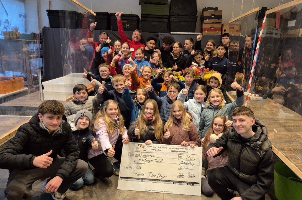 „Arm und reich – weniger Ungleichheit“: So das Projekt-Motto der Klassen 9clsk und 4a. Im Rahmen des Grumi-FreiDay sammelten die beiden Klassen gemeinsam in der Vorweihnachtszeit Geld für den Hachinger Tisch. Sehr engagiert machten sich die Kinder auf den Weg durch Unterhaching, baten um Spenden und schenkten Freude mit kleinen gebastelten Tonanhängern. Überglücklich konnten Herr Schuller und Frau Belm (Klassenleitungen) im Anschluss verkünden: Wir haben Spenden im Wert von 1000,- € erhalten! Ehrenamtliche Helfer nahmen nun das Geld gerne in Empfang und gaben uns Einblick in ihre Arbeit. Der Hachinger Tisch – ein wertvolles Stück Gemeinschaft! Dank an alle, die dieses Projekt möglich machen.